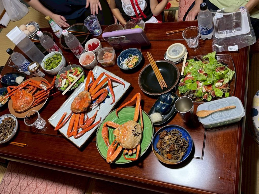 従姉妹の義実家へお邪魔させてもらってそこでカニパーしつつ夕飯を食べることになったわけです。