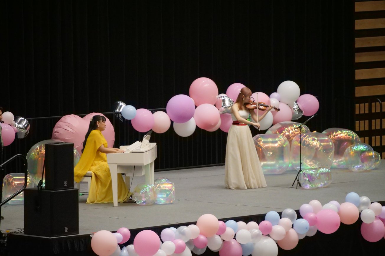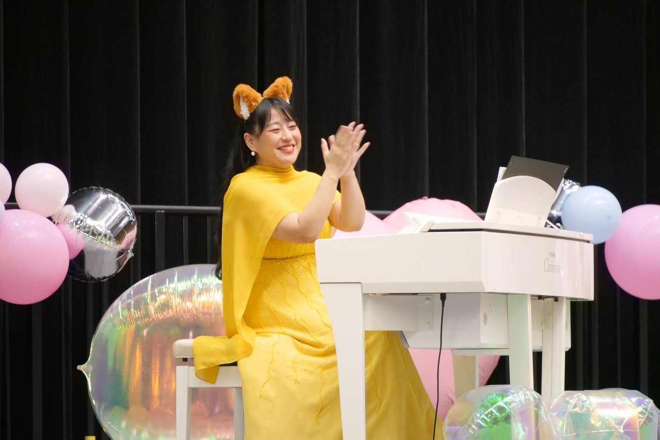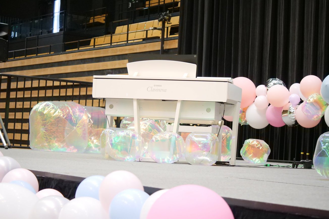 白いピアノが黒い幕に映えて素敵でした