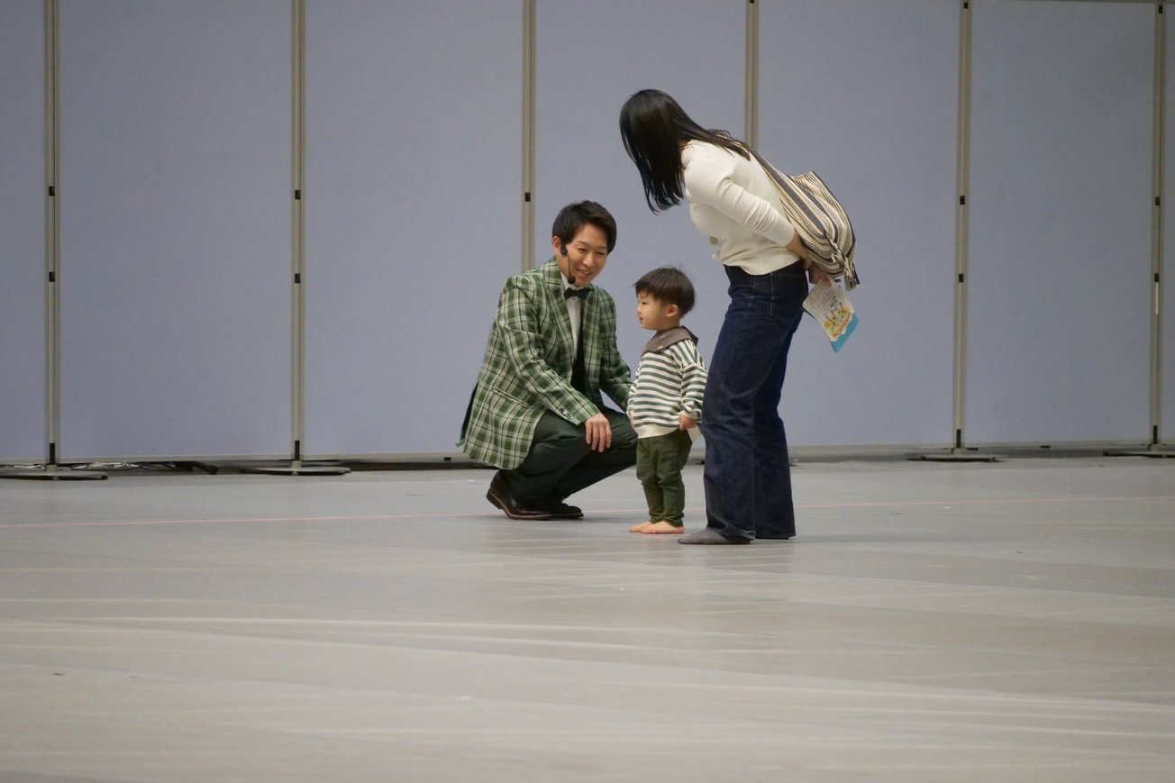 こどもの目線になってお話するゆうやお兄さん。お兄さんの優しい雰囲気が写真からも伝わってきます