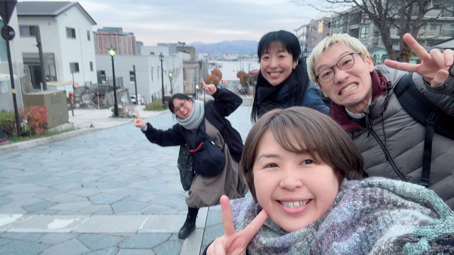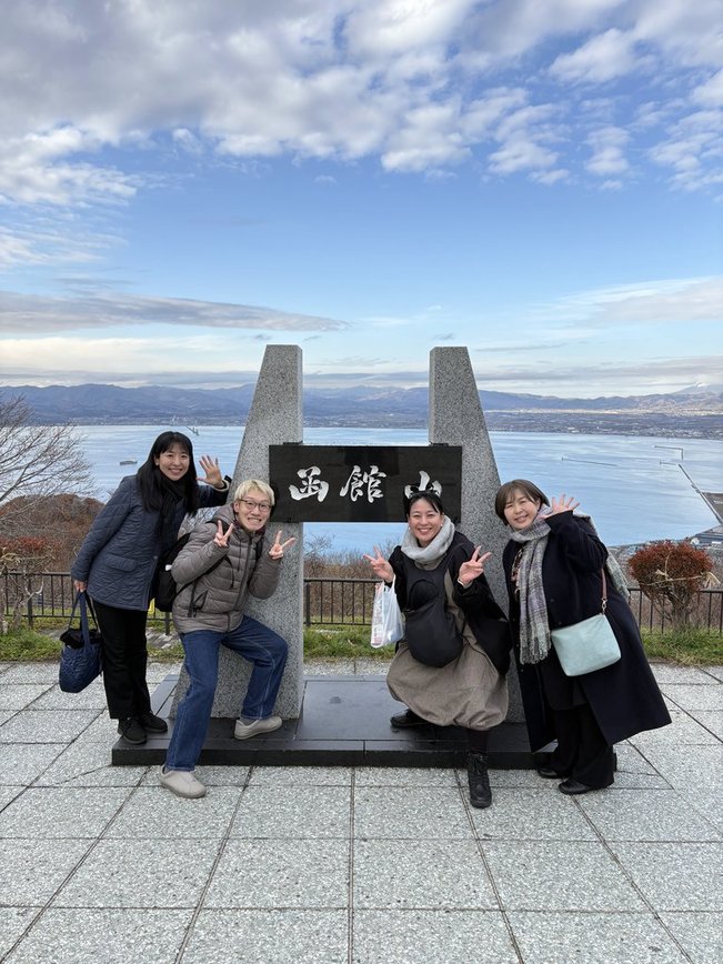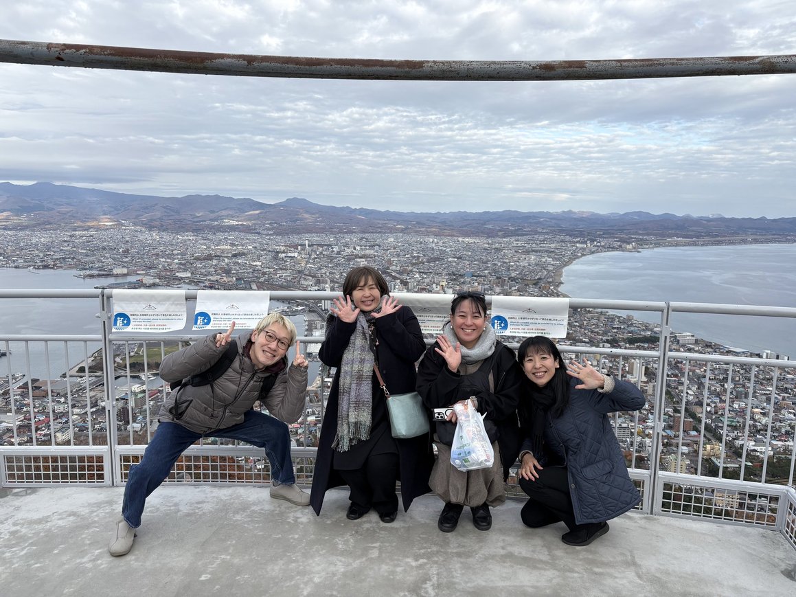 みんなで記念撮影して、天気がイマイチだったし、夜景じゃないし、ロープウェイ休みだしと思っていたけど、本当に来て良かった!