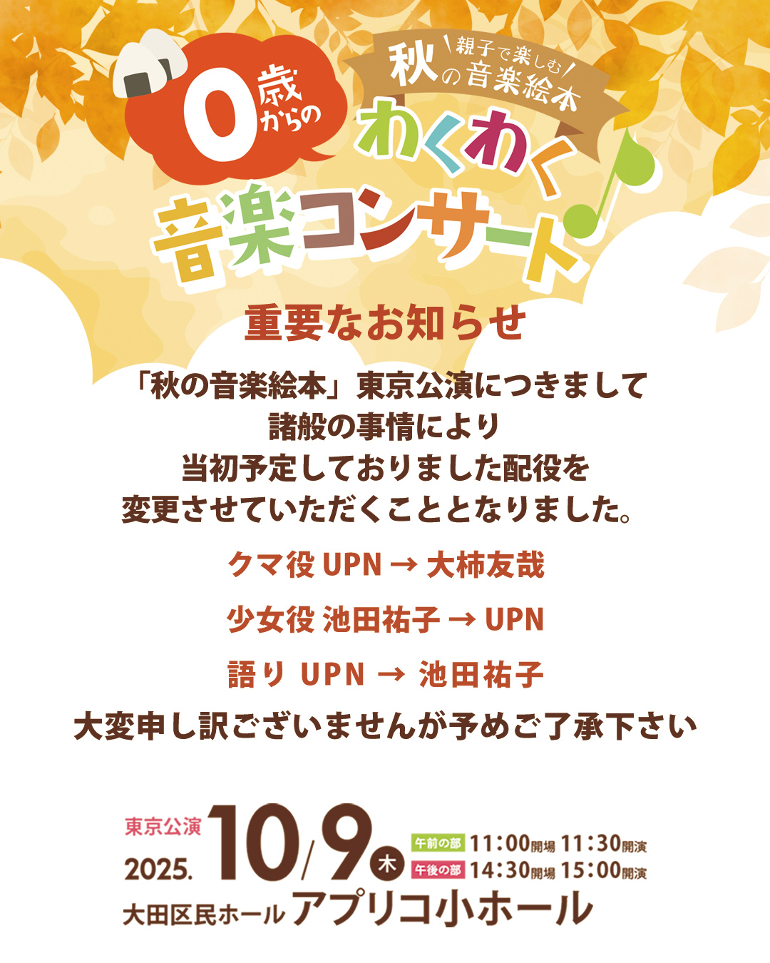 0歳からのわくわく音楽コンサート 親子で楽しむ 秋の音楽絵本