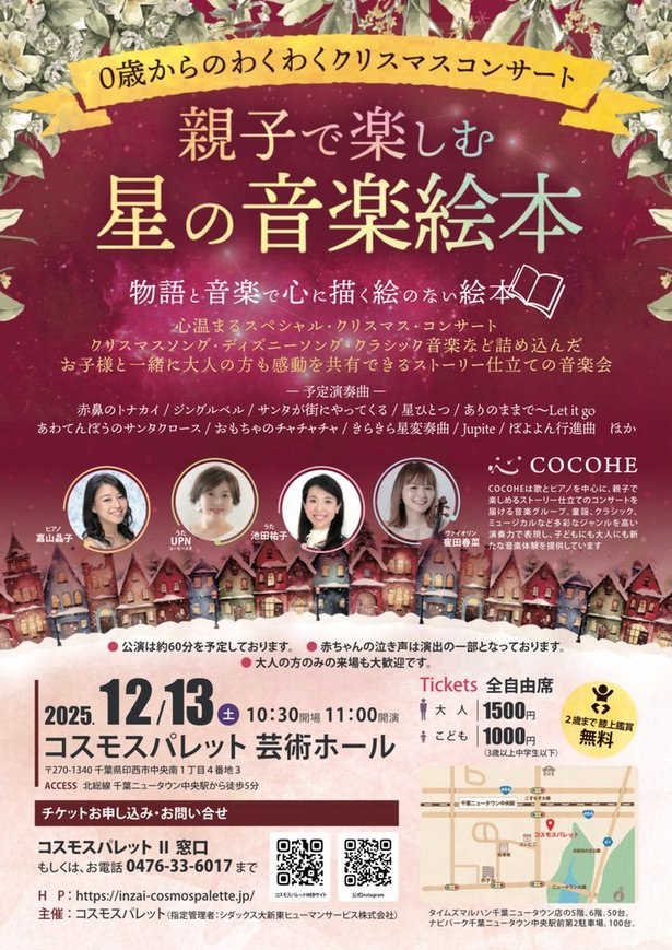 コスモスパレット 芸術ホールにて、COCOHEのオリジナルプログラム「星の音楽絵本」の出張公演を開催いたしました。