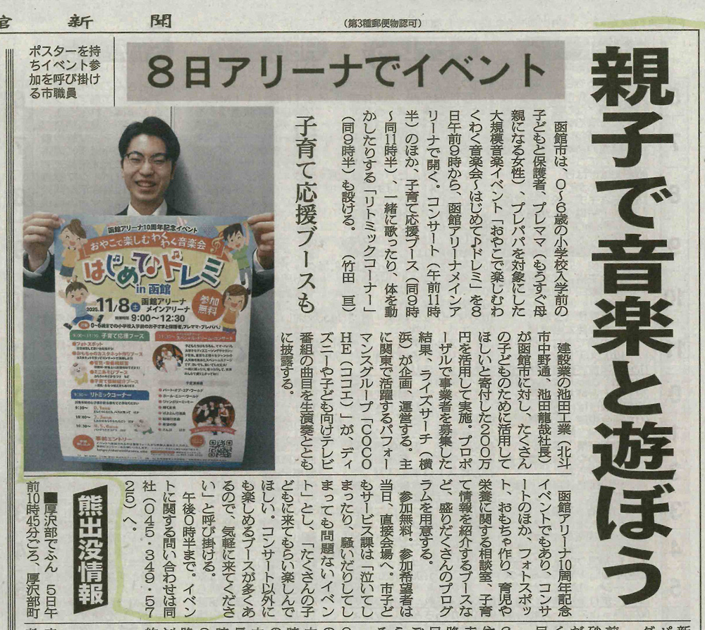 函館アリーナ10周年記念イベントとして開催された「はじめて♪ドレミ親子で楽しむわくわく音楽会」にCOCOHEが出演しました。
